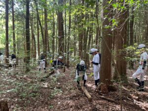 菅の台では、こまくさ橋南北側の遊歩道を下りライオンズの森周辺の清掃活動を行いました。子どもたちにもライオンズの森を知ってもらうことができました。閉会式終了後は、伊東会長の指示のもとメンバーでライオンズの森の石碑を磨き周辺の草を取りました。石碑も5年ぶりに輝きを取り戻し参加したメンバーの心も当日の空のように晴れ晴れとした気持ちになりました。短時間の作業でしたが有意義な時間を過ごすことが出来ました。