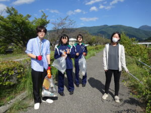 エクセラン高校周辺、薄川周辺、弘法山、市内道路等のゴミ拾い、草取り、ガム取り等々の