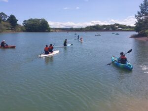 体験会では東御市身体教育研究所のスタッフによるSUP・カヌー体験をしました。