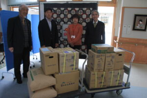 池田町社会福祉協議会が生活困難者などに食料品などを提供するための「フードドライブ」に取り組んでいることから、新事業として支援協力し、米30㎏.水176ℓ、野菜ジュース1箱を社会福祉協議会に贈りました。社協担当者から「お米の値段が高くなっており、配るのも大変な中でありがたい。ぜひ活用させていただきたい」とお礼の言葉をいただきました。