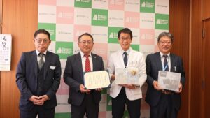 横戸会長、古畑第一副会長、宇留賀理事が贈呈式に参加しました。