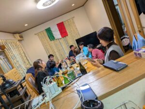 二日目には金子さんが諏訪の神社巡りや美しいガラス美術館へ案内してくれました。その後は美味しい寿司屋で食事をし、夜は松本城のライトアップを見学。街を散策した後、帰宅して私が作ったカルボナーラは大好評でした。