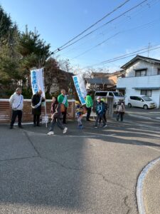 4回目となる信州あいさつ運動を、長野市立青木島小学校の正門にて行いました。