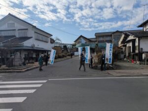 小布施町は、小学校生徒594人、中学校生徒281人の2校を担当している。暑い日、寒い日にかかわらず幟旗・タスキ・クラブジャンパーを着て「おはようございます」とお声がけをし、交通ルール・横断歩道の渡り方の指導を行っている。